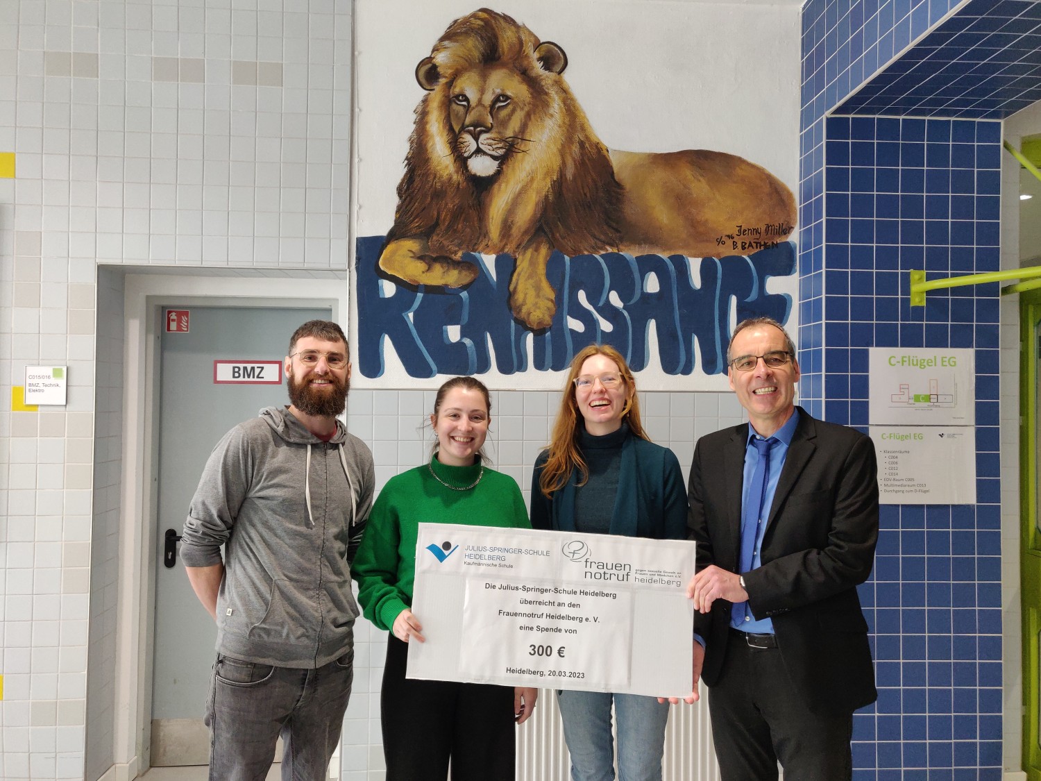 Im Anschluss an das Klassenübergreifende Projekt "gegen Hass und Hetze" (Bericht folgt), gelang es, dem Frauen Notruf Heidelberg ev. 300 Euro finanzielle Mittel zur Verfügung zustellen.