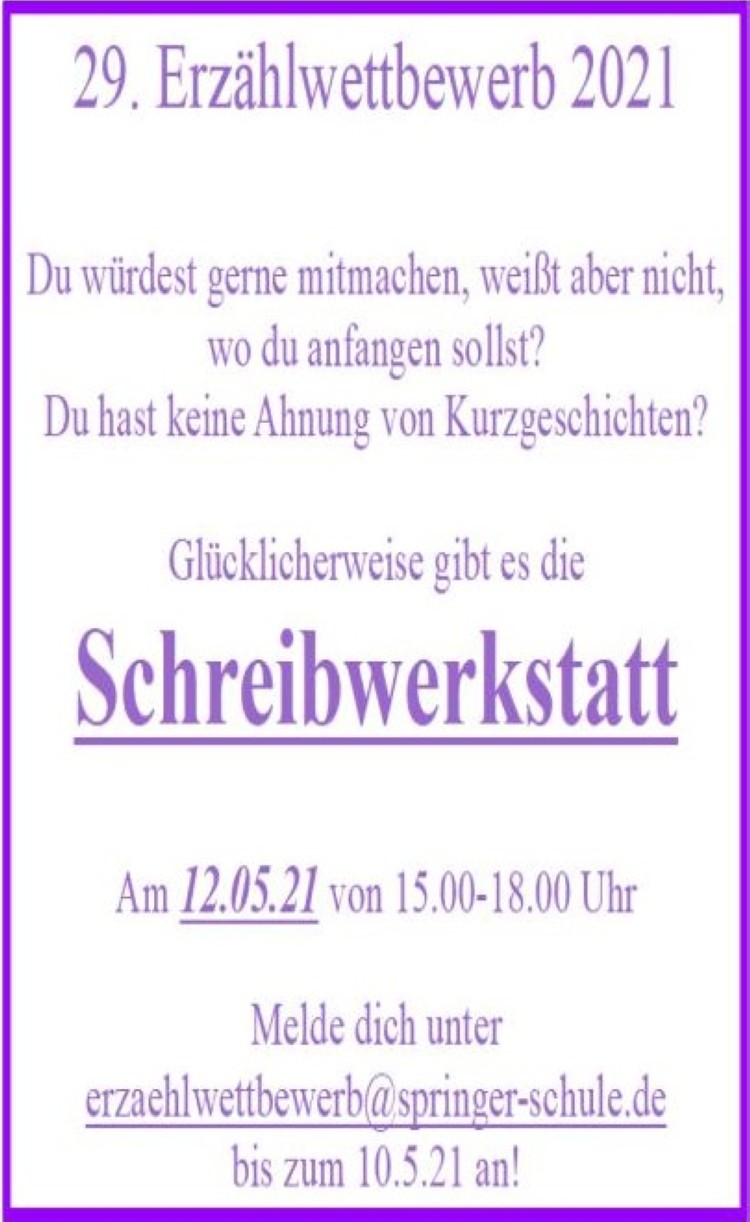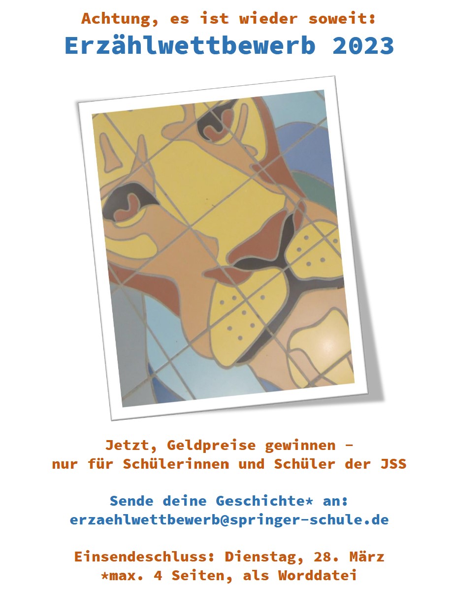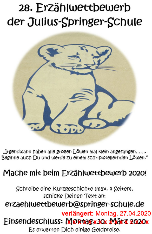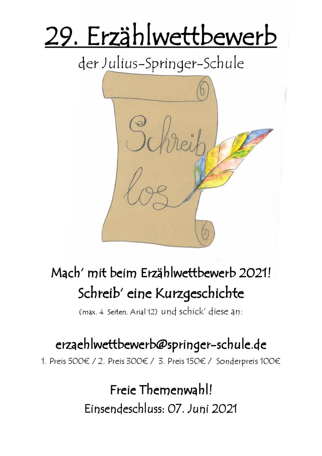 auch in diesem besonderen Jahr findet der Erzählwettbewerb an der Julius-Springer-Schule statt. Wir sind uns sicher, dass ihr sehr viel zu erzählen habt.