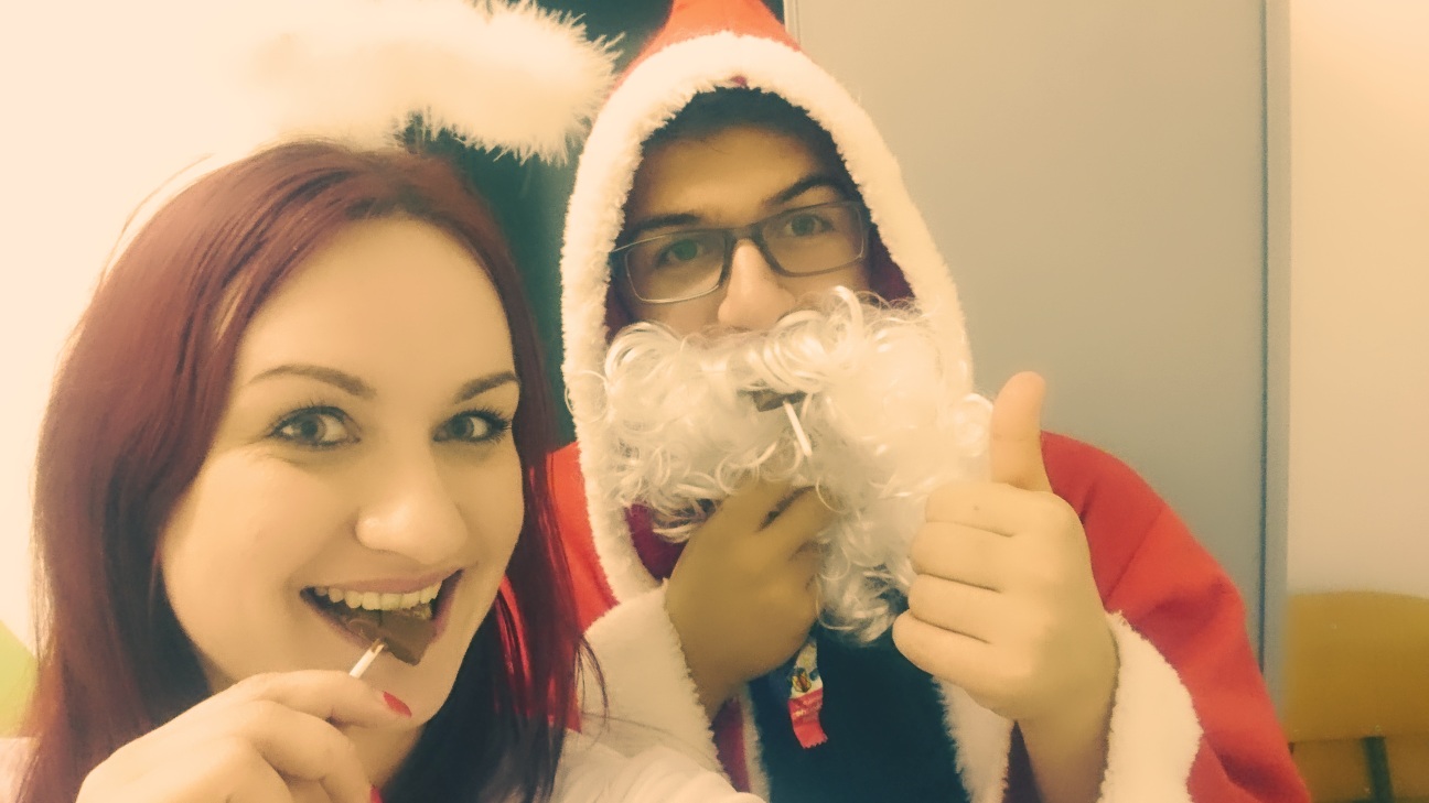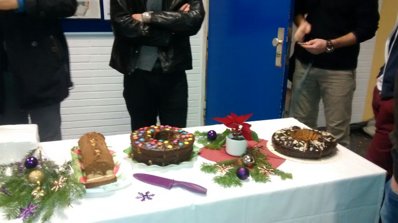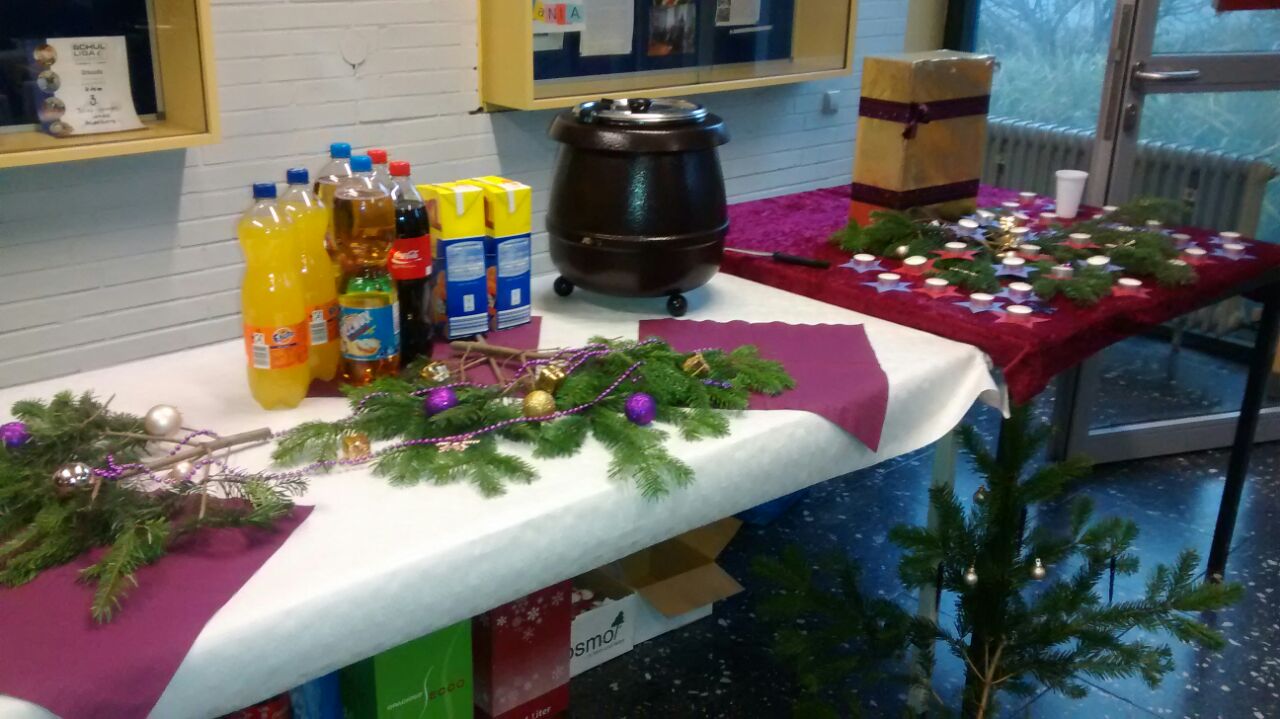Wir als SMV waren bestrebt, am letzten Schultag noch einen dieser schönen Momente zu erzeugen und dekorierten am 19.12.2014 den Eingangsbereich rund um das Lehrerzimmer in weihnachtlichem Grün und Rot. Verschiedene Klassen oder einzelne Schüler erklärten sich bereit, Kuchen zu backen und diesen zum Verkauf bereitzustellen. Ebenso wurde von uns für eine reiche Versorgung an Getränken gesorgt.
