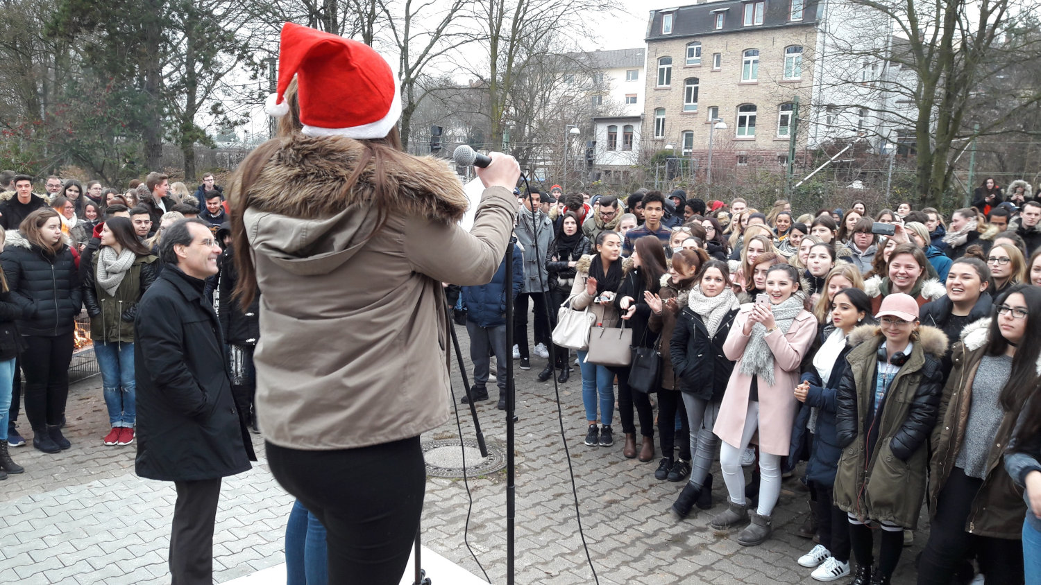 Jonas Wagner eröffnete als Vertreter der gesamten Schülerschaft die Veranstaltung und erinnerte daran, dass längst nicht alle Menschen diese Zeit des Jahres so genießen können, wie wir es tun. Viele seien durch Terror, politische Unruhen und Naturkatastrophen zu einem Leben in Unsicherheit gezwungen. Der Religionslehrer Herr Stratmann rief die Schüler zu mehr Nächstenliebe im Alltag auf - ganz gleich welcher Religion wir angehören -, denn die Nächstenliebe ist der Schlüssel zu einem friedlichen Leben in der Gemeinschaft. Auch Herr Liebler, unser Schulleiter, war dieser Ansicht und wünschte allen Schülern eine besinnliche und entspannte Weihnachtszeit.