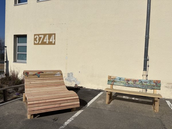 Die Schülerinnen und Schüler der VABO2 hatten im Rahmen eines sechstägigen KooBo Z-Projektes zwei Bänke gebaut und gestaltet.