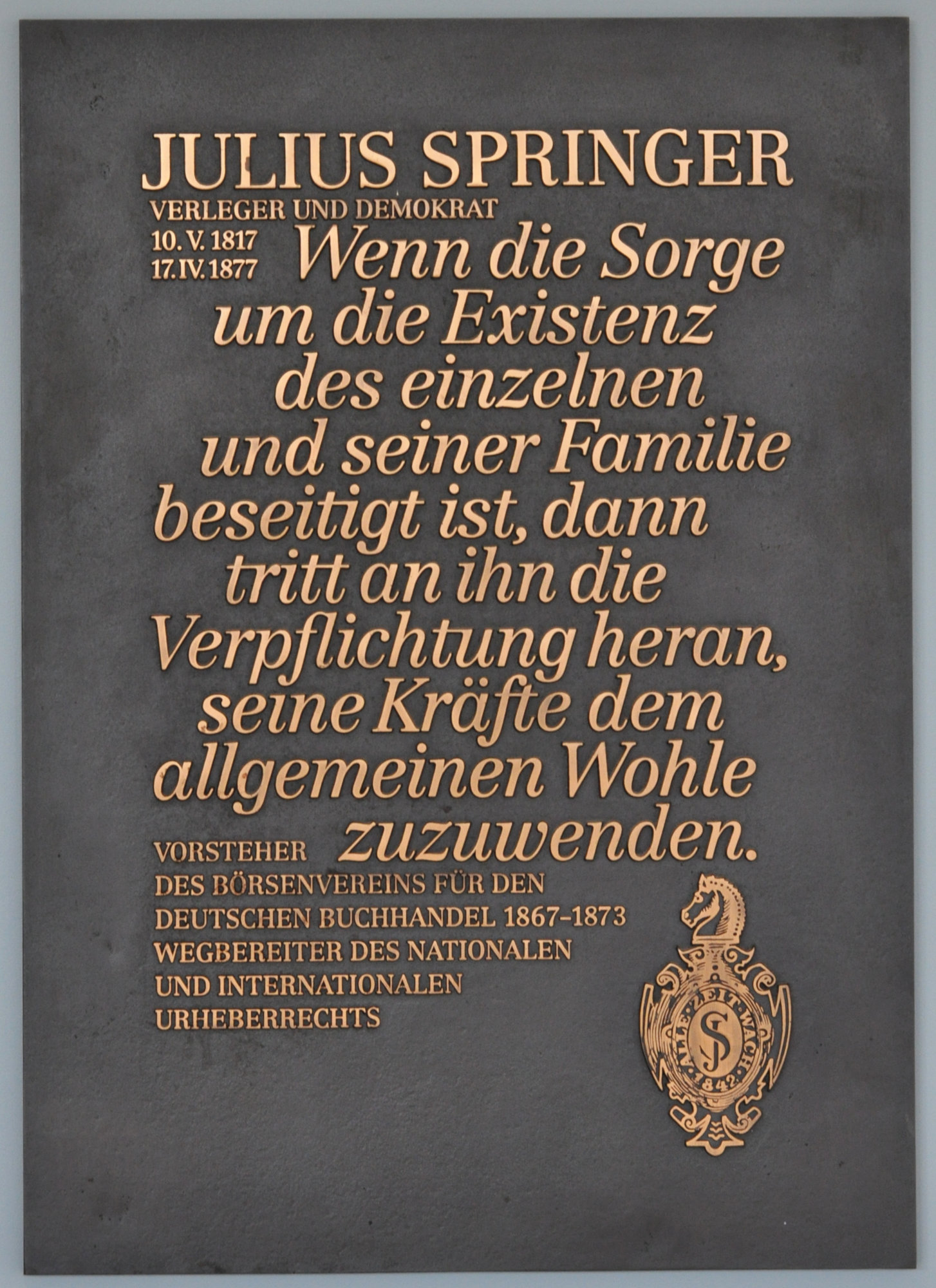 Quelle: Heinz Sarkowski: Der Springer-Verlag. Stationen seiner Geschichte. Teil I: 1842–1945. Berlin 1992
